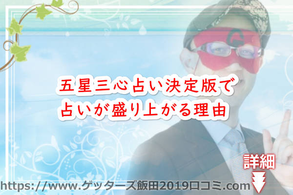 - ゲッターズ飯田の占い本である五星三心占いの2019年版を利用することで、今年の残りの過ごし方もわかっちゃうんです。今年の2018年下半期の後半戦をどう過ごすか?で2019年が変わってきます。今年の占いも満載なゲッターズ飯田の2019年版五星三心占いの本とは?